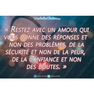 « Restez avec un amour qui vous donne des réponses et non des problèmes, de la sécurité et non de la peur, de la confiance et non des doutes. »